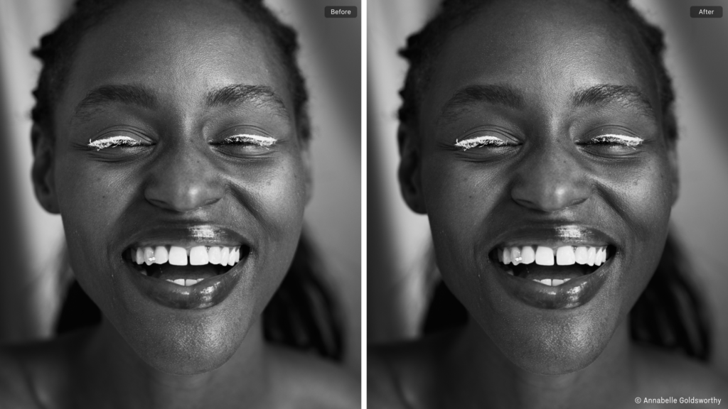 Did you know that Capture One has built-in Dodge and Burn brushes? They are part of the Style Brushes. For this image, it’s easy to gently darken the edge of the face of the model to enhance the depth without affecting the background.