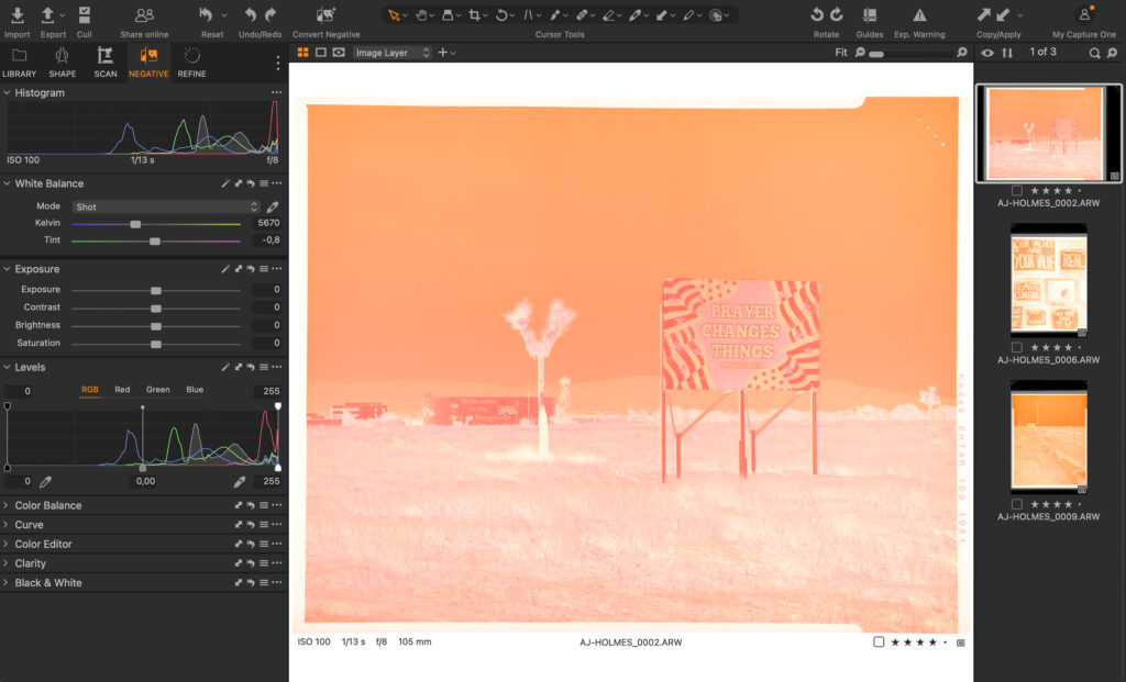 Once you are happy with the conversion, you can repeat the process in batch and continue editing with the tools available in Capture One. Settings established on one image can be applied confidently across subsequent captures, making it possible to convert entire rolls efficiently while maintaining predictable results.