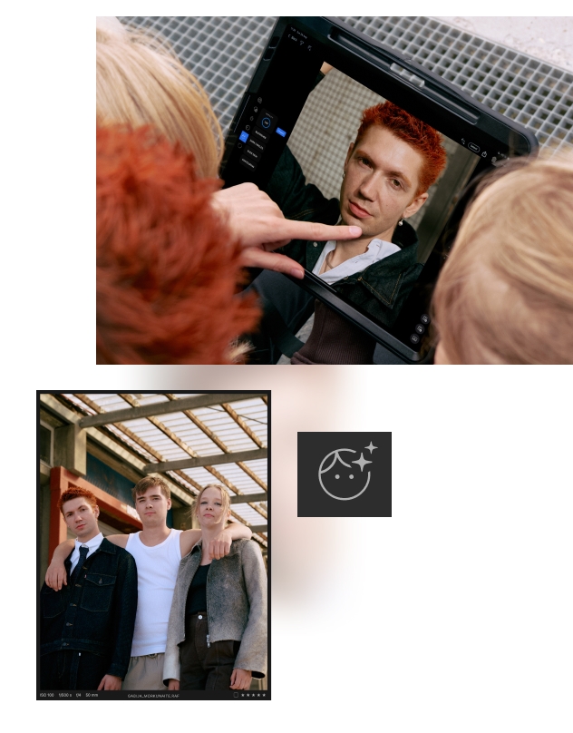 With Retouch Faces, you can complete your post-work on the fly and deliver your images on location.